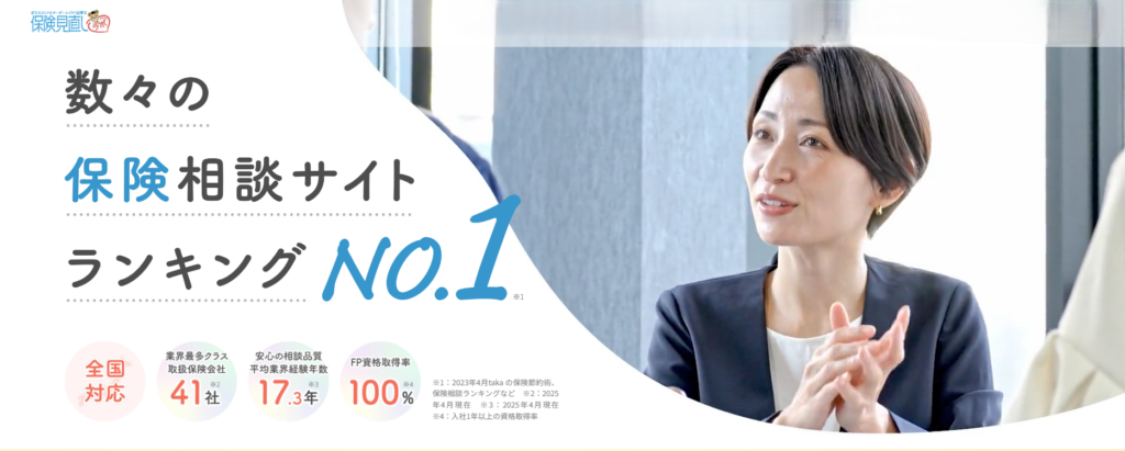 保険見直しラボは、**全国対応、取扱保険会社41社、平均業界経験年数17.3年、FP資格取得率100%**を公式で打ち出している無料保険相談サービスです。数字で強みを見せやすいのが特徴で、「経験豊富な担当者にしっかり相談したい」という読者に向いています。相談方法も訪問・オフィス・オンラインに対応しており、土日祝日も相談可能と案内されています。さらに、マンガLPやお客さまの声ページでは、保険料が下がった、納得の保険選びができた、出産のタイミングで相談して良かった、といった主婦・子育て世帯と相性の良い内容も多く見られます。大手の知名度で押すというより、「ベテランFPにじっくり相談したい」「比較できる保険会社数を重視したい」「相談の質で選びたい」という人に強い案件です。子育て世帯女性向けランキングにおいても、保険料のムダを削りつつ必要な保障は落としたくない、という慎重なニーズに合いやすく、4位でも十分に訴求力があります。