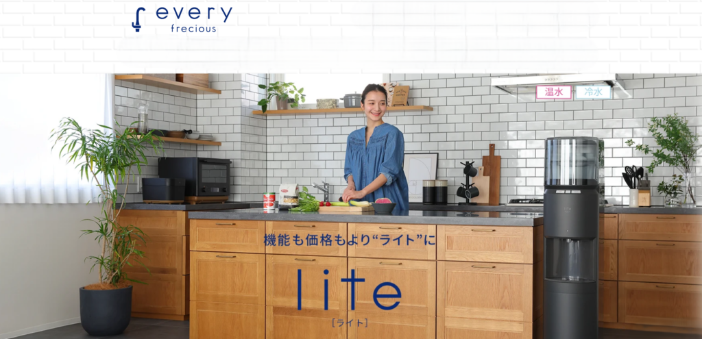 エブリィフレシャスは「工事不要で手軽に始めたい人」に最適なウォーターサーバーです。水道直結型に比べると給水の手間はあるものの、その分設置のハードルが低く、賃貸住宅でも導入しやすい点が魅力です。また、デザイン性の高さは他社と比較してもトップクラスで、インテリアを重視する家庭にもおすすめできます。定額制でコスト管理もしやすく、バランスの取れた1台として非常に評価が高いサービスです。